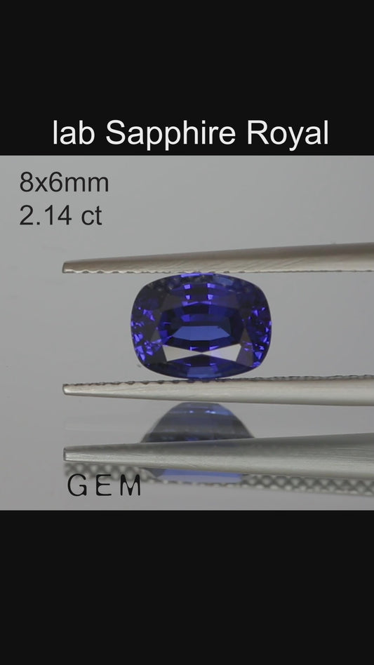 Cut stone - Sapphire Royal Blue Czochralski (Pulled) lab grown, facet Cushion 8x6mm 1.91-2.14ct