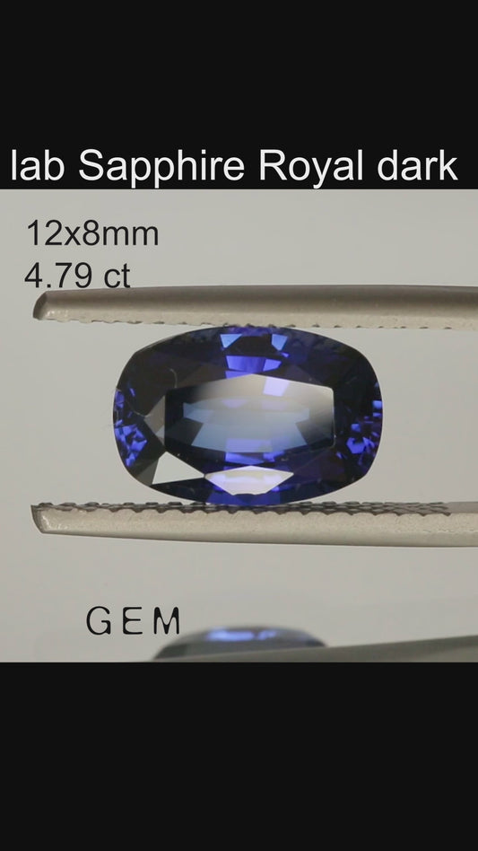 Cut stone - Sapphire Royal Blue Czochralski (Pulled) lab grown, facet Cushion 12x8mm 4.54-4.79ct