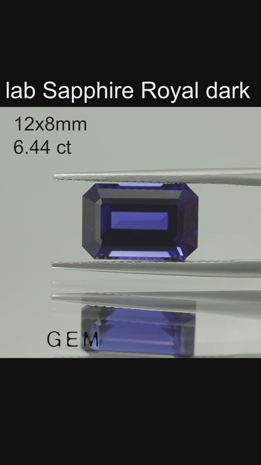 Cut stone - Sapphire Royal Blue dark Czochralski (Pulled) lab grown, facet Octagon 12x8mm 6.44ct