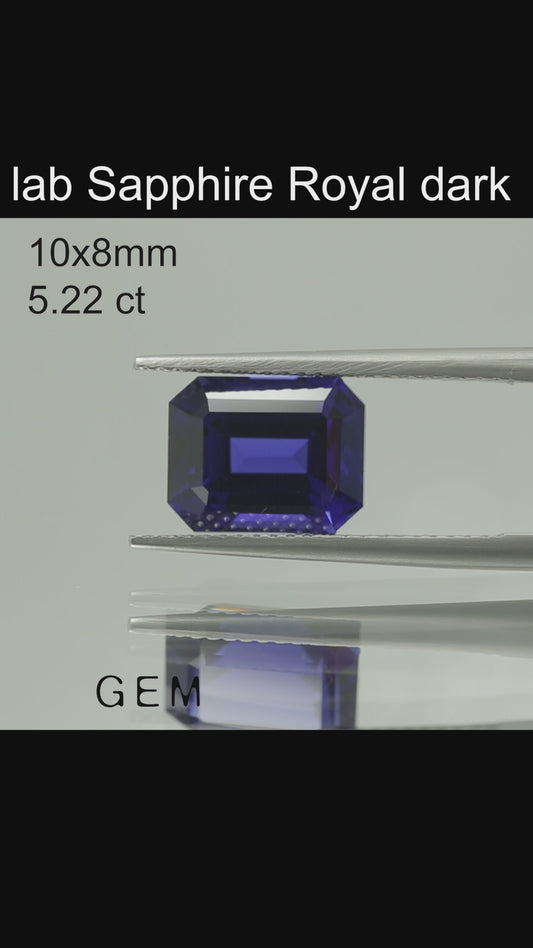 Cut stone - Sapphire Royal Blue dark Czochralski (Pulled) lab grown, facet Octagon 10x8mm 5.22ct