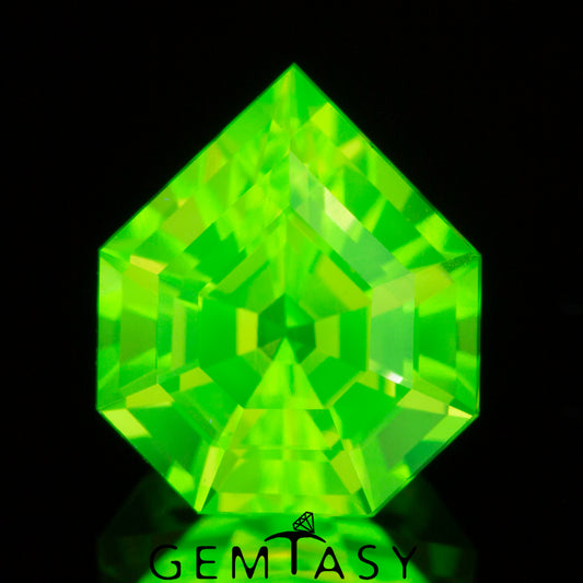 Cut stone - LuAG Yellow neon Czochralski (Pulled) lab grown, facet Shield 8x6.5mm 2.98ct