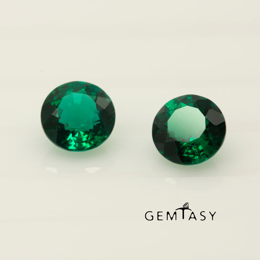 Cut stone - Emerald Zambian hydrothermal lab grown, facet Round 8mm 1.70-1.85ct