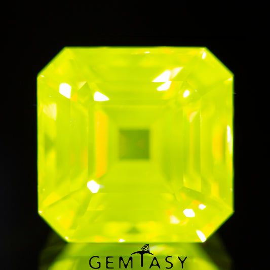 Piedra tallada - YAG Amarillo neón Czochralski (Extraído) cultivado en laboratorio, facetado Almohadón 8x8mm 3,35ct