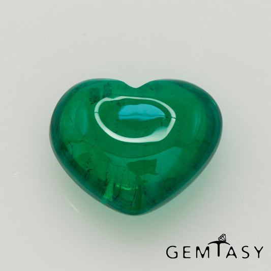 Piedra tallada - Esmeralda cultivada en laboratorio hidrotermal colombiano, cabujón Corazón 13.5x11.5mm 7.26ct