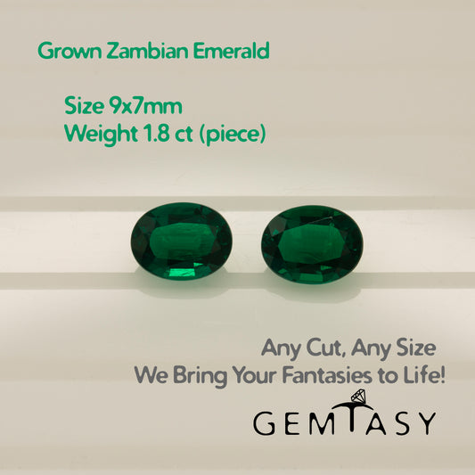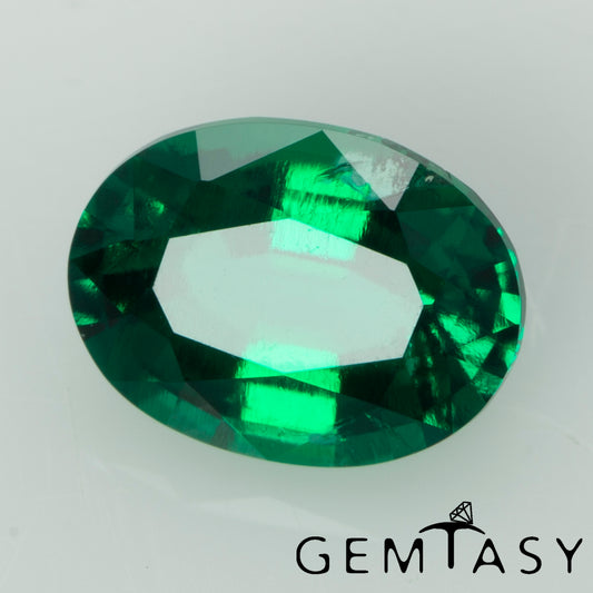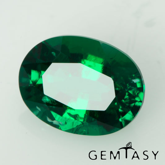 Piedra tallada - Esmeralda cultivada en laboratorio hidrotermal de Zambia, facetada Ovalada 9x7mm 1.8ct