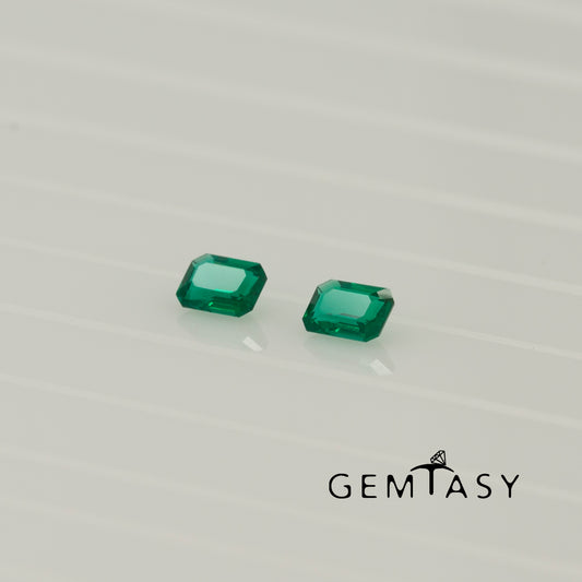 Piedra tallada - Esmeralda cultivada en laboratorio de Zambia, octágono facetado 4x3 mm 0.45 ct (par)