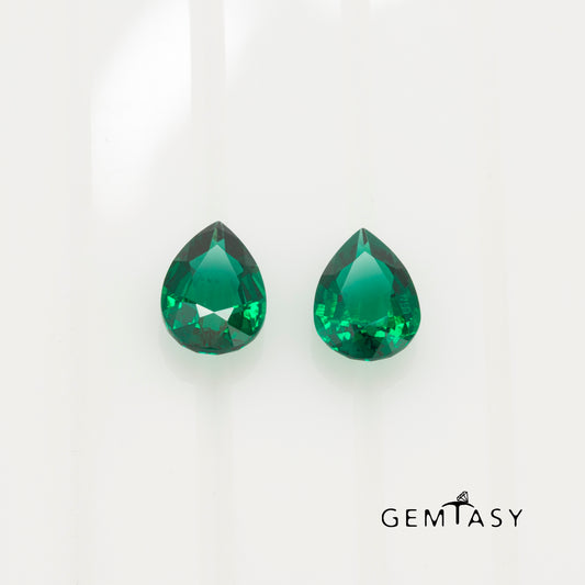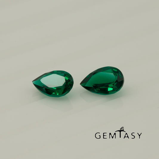 Piedra tallada - Esmeralda cultivada en laboratorio hidrotermal de Zambia, faceta Pera 9x6mm 2.3ct (par)