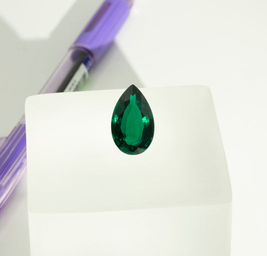 Piedra tallada - Esmeralda cultivada en laboratorio hidrotermal de Zambia, facetada Pera 15x10mm 5.70ct