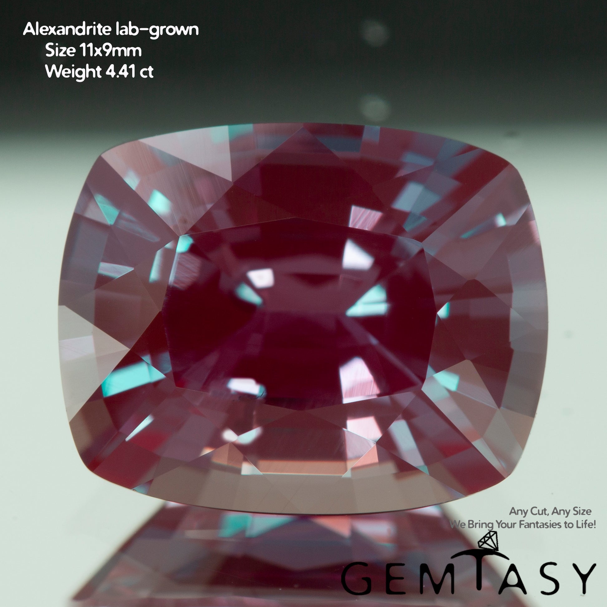 Piedra tallada - Alejandrita Czochralski (Extraída) cultivada en laboratorio, facetada Cojín 11x9mm 4,40-5,14 ct