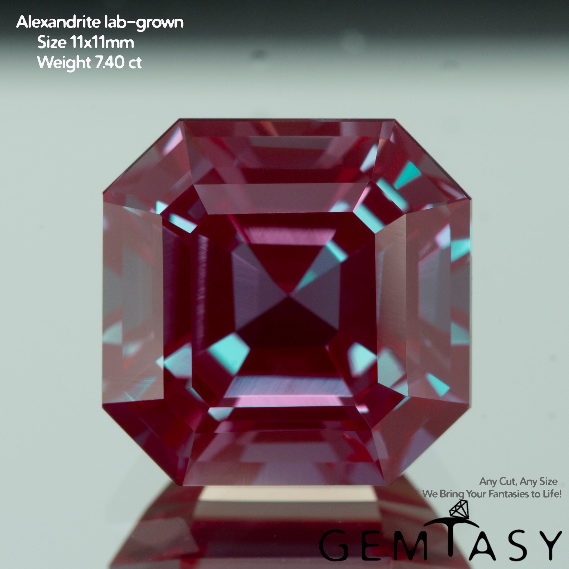 Piedra tallada - Alejandrita Czochralski (Extraída) cultivada en laboratorio, faceta Octágono 11x11mm 7,40-8,12ct