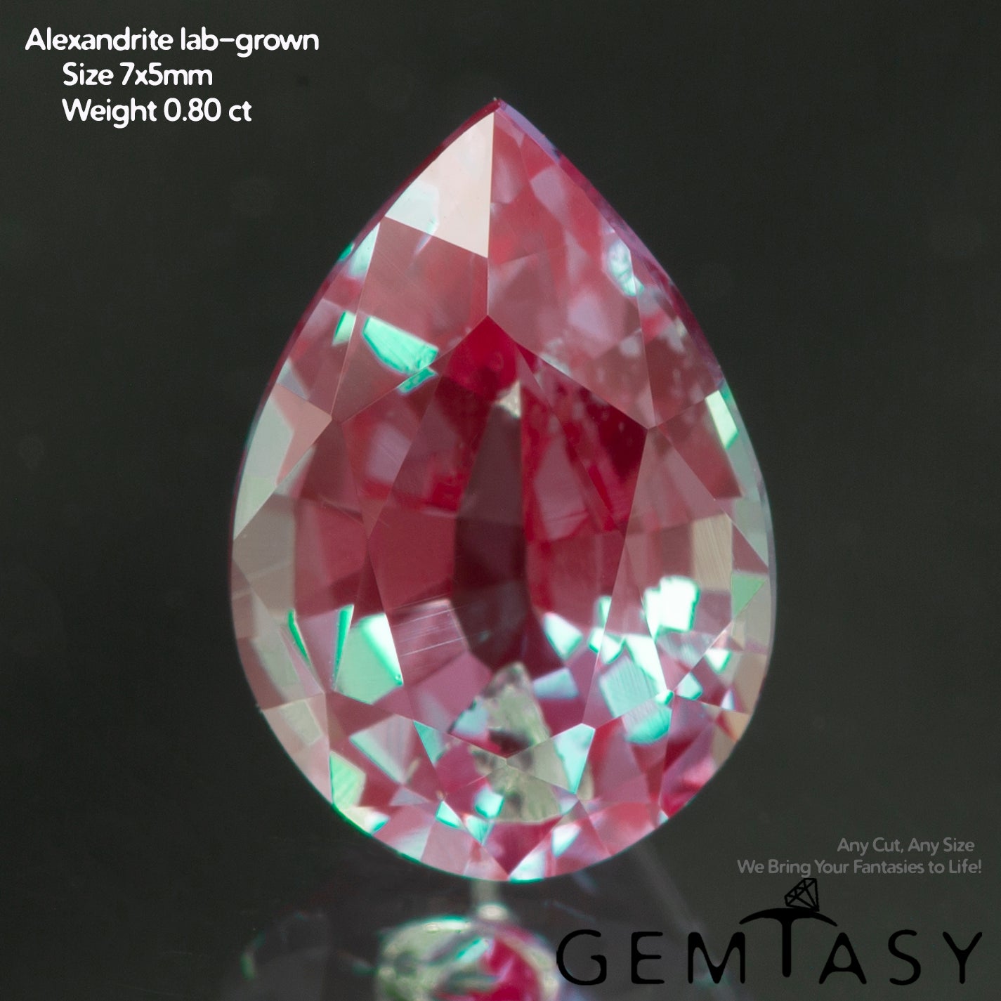 Piedra tallada - Alejandrita Czochralski (Extraída) cultivada en laboratorio, facetada Pera 7x5mm 0,72-0,91ct