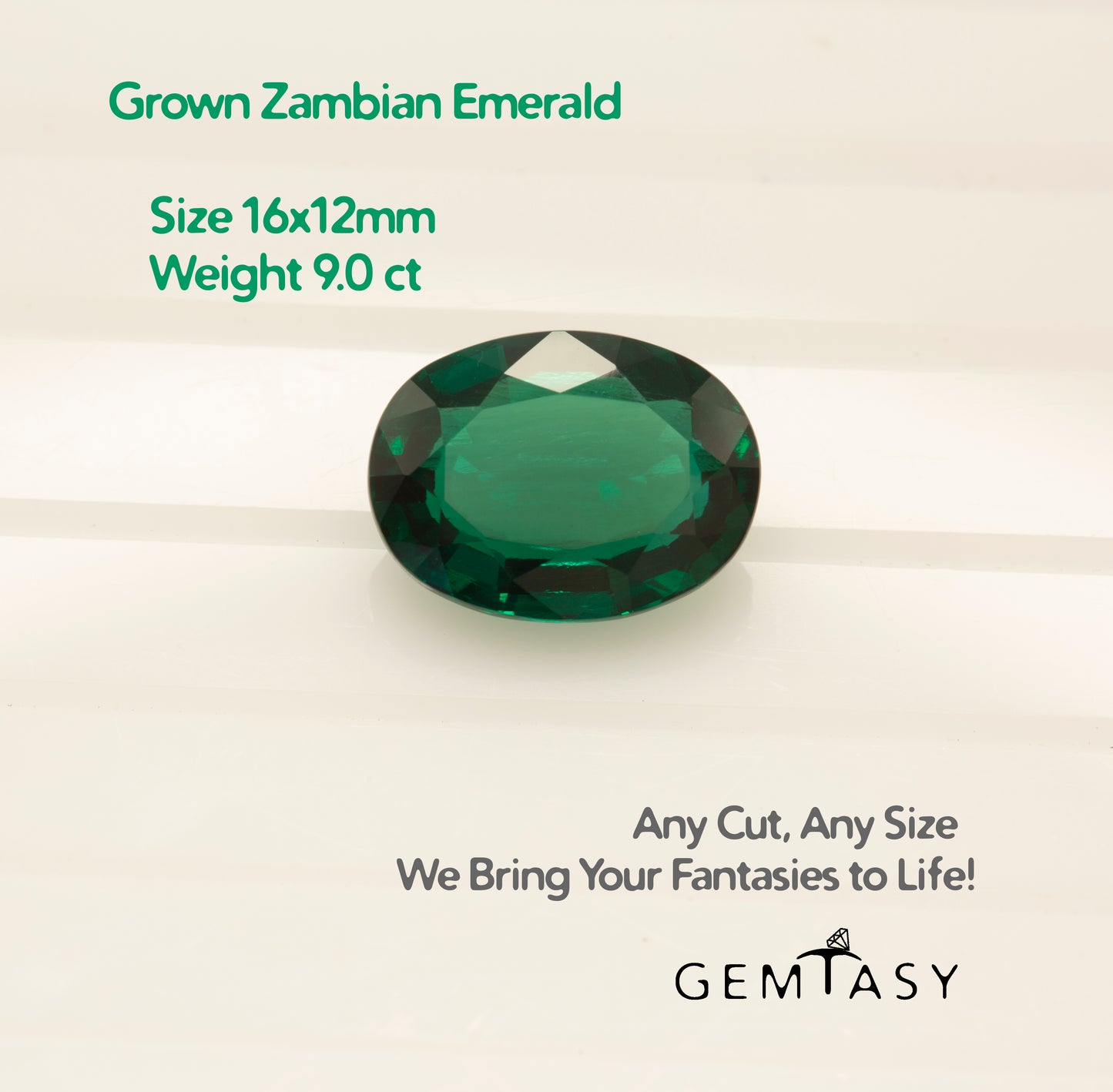 Piedra tallada - Esmeralda cultivada en laboratorio hidrotermal de Zambia, facetada Ovalada 16x12mm 9ct