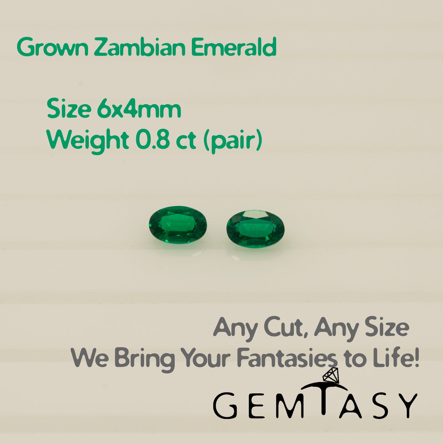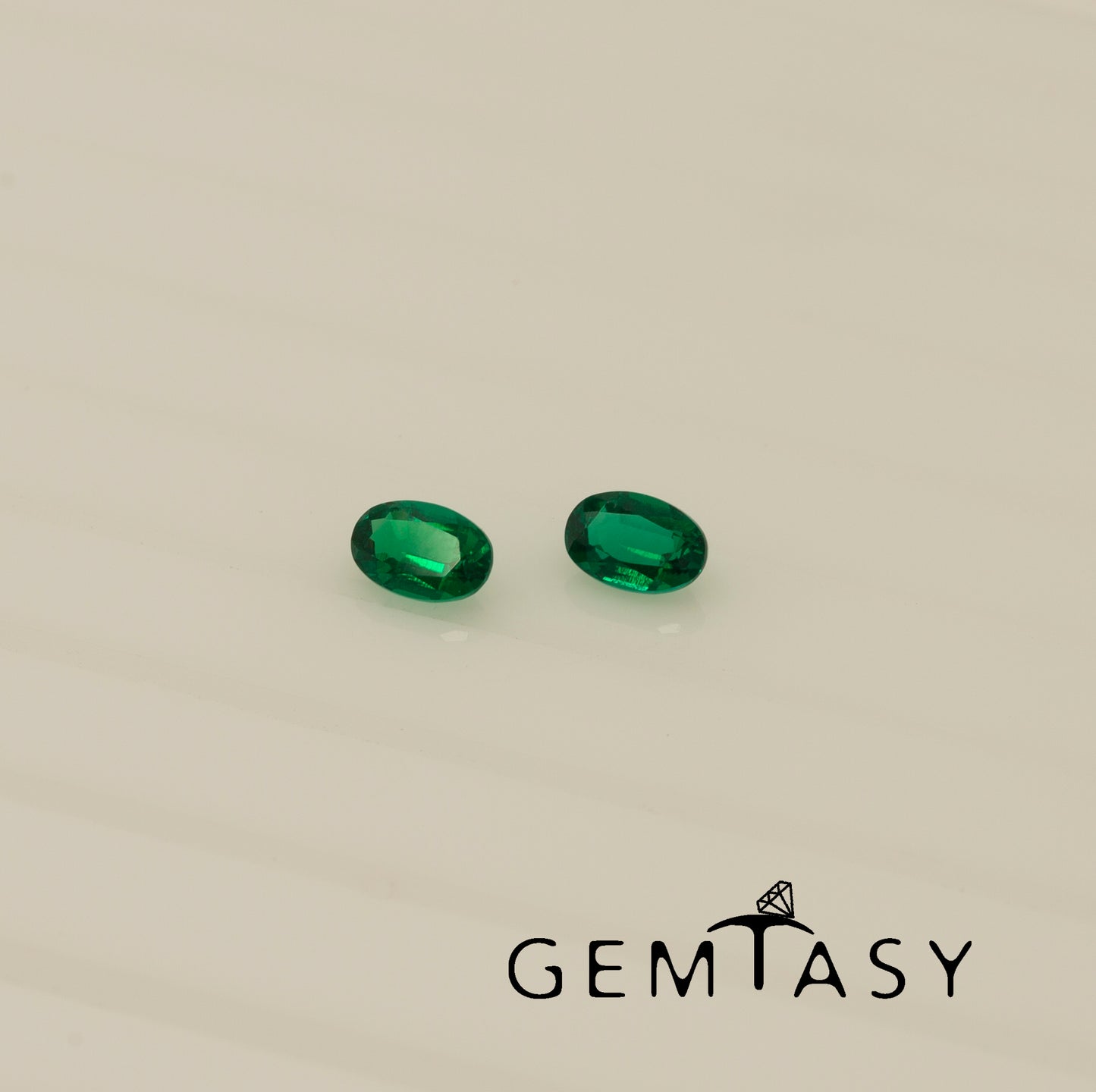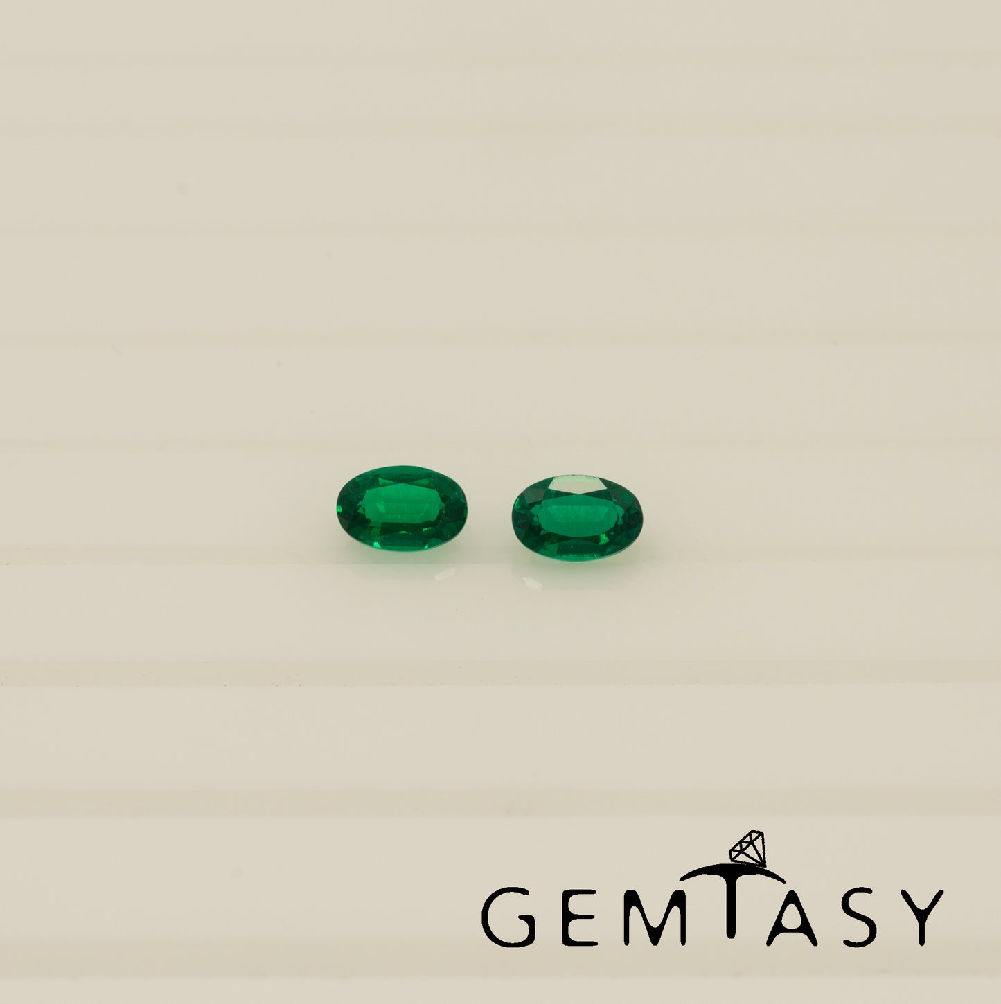 Piedra tallada - Esmeralda cultivada en laboratorio hidrotermal de Zambia, faceta Oval 6x4mm 0.8ct (par)