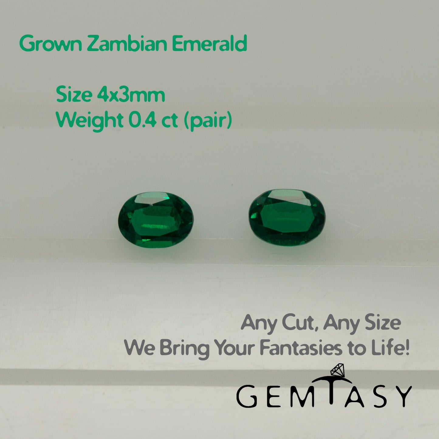 Piedra tallada - Esmeralda cultivada en laboratorio hidrotermal de Zambia, faceta Oval 4x3mm 0.4ct (par)