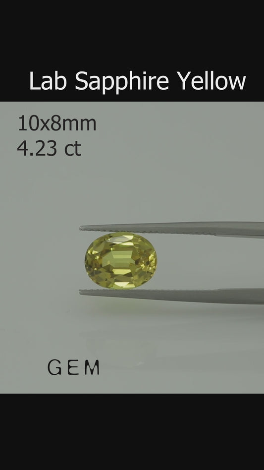 Pierre taillée - Saphir Jaune Czochralski (Tiré) cultivé en laboratoire, facette Ovale 10x8mm 4.23ct