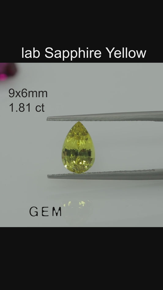 Pierre taillée - Saphir Jaune Czochralski (Tiré) cultivé en laboratoire, facette Poire 9x6mm 1,81ct