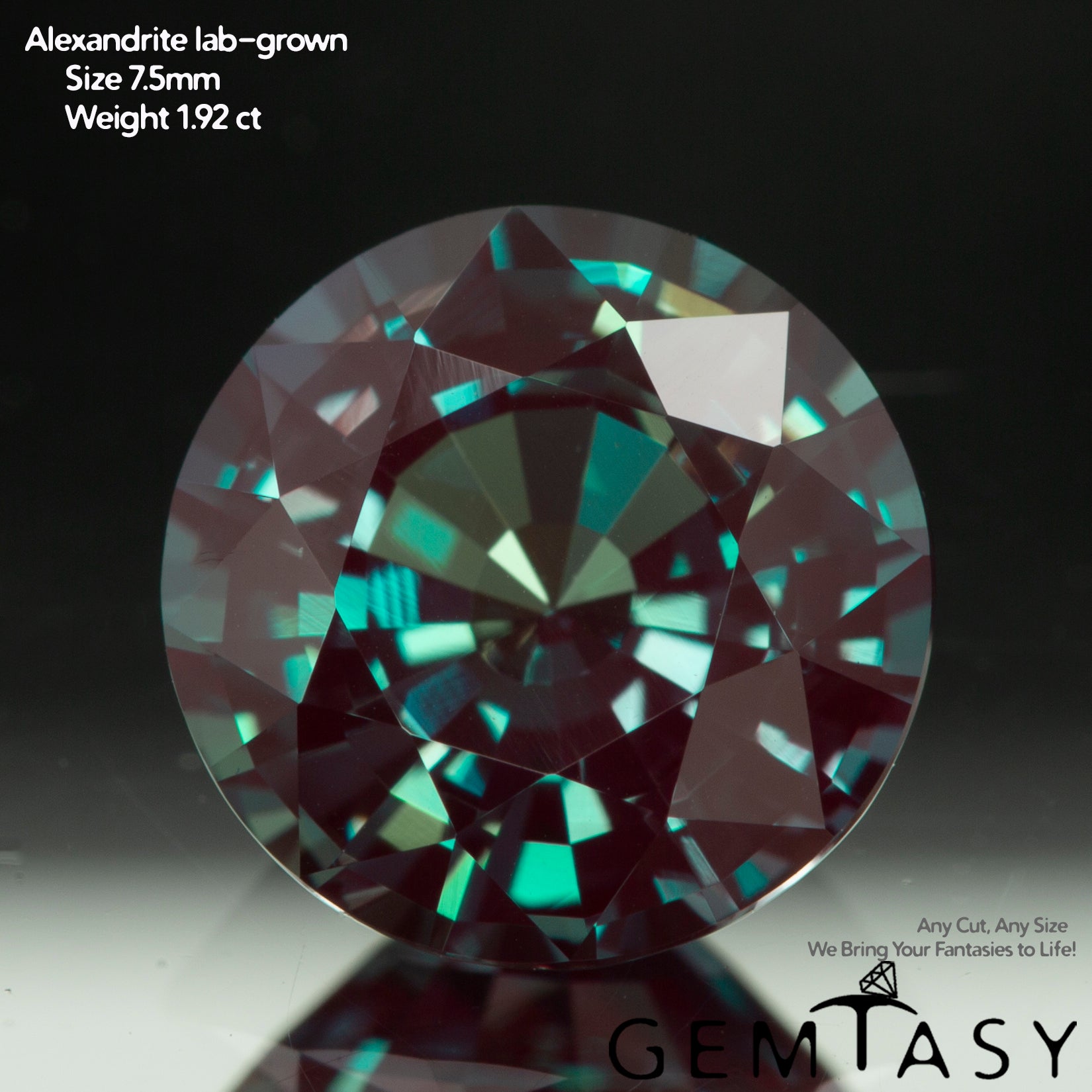 Pierre taillée - Alexandrite Czochralski (tirée) cultivée en laboratoire, facette Ronde 7,5mm 1,92-2,41ct