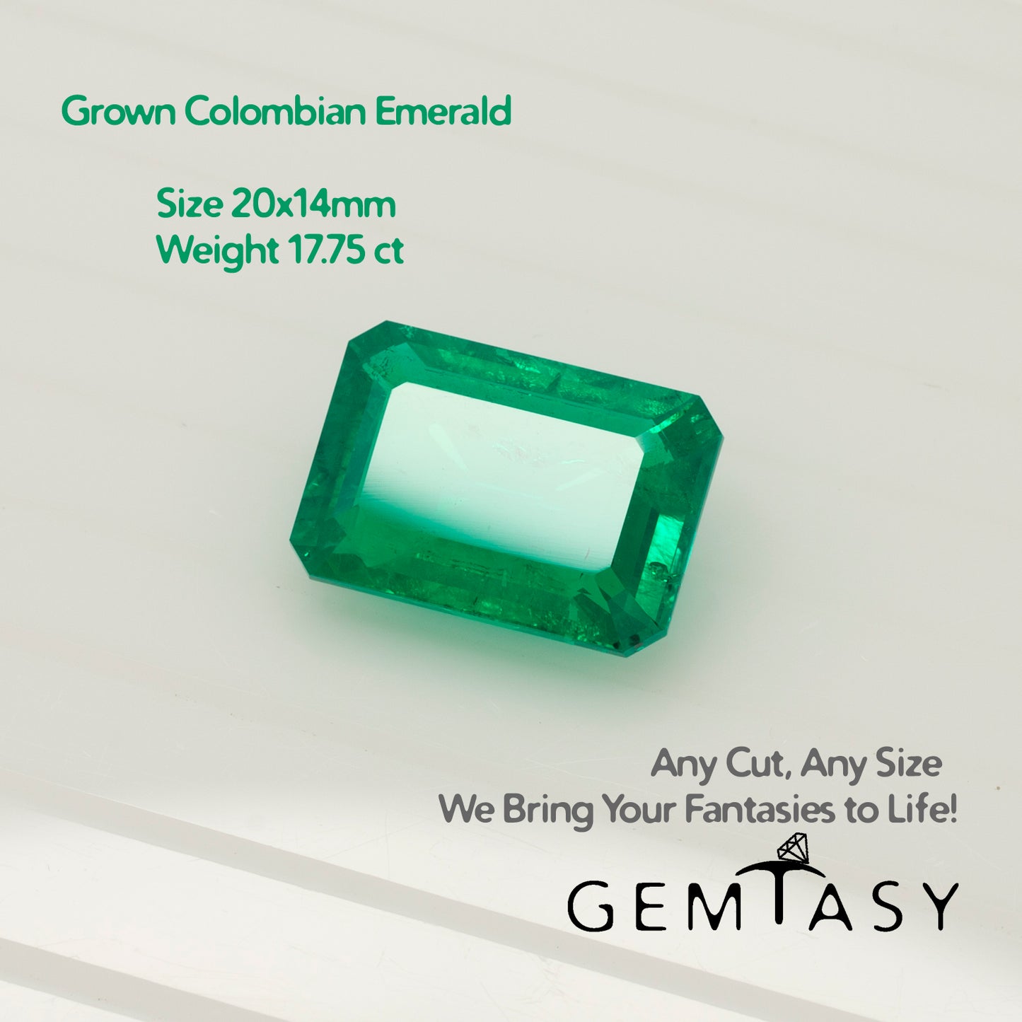 Pierre taillée - Émeraude colombienne cultivée en laboratoire, facette Octogone 20x14mm 17.75ct